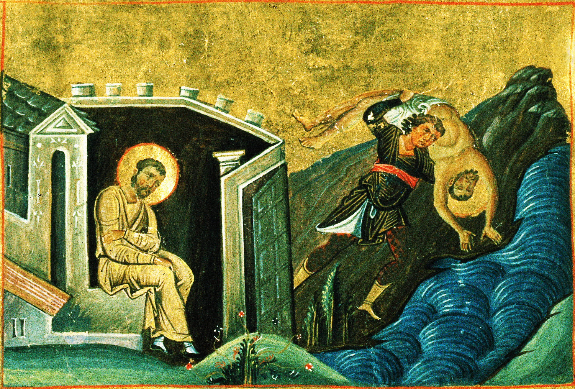 她说:“我看到了一个从人间通往天堂的石梯。它非常狭窄,每次只能有一个人可以爬上去。刀子的尖朝外插在墙上,在梯子下一条可怕的大蛇盘踞着。萨提尔兄弟没有理会大蛇,迅速爬上梯子,在梯子顶上大喊‘佩雷佩图亚,我在等你!小心蛇,它要吞噬你!’