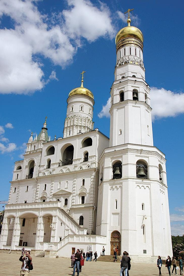 俄罗斯钟楼最引人注目的例子是前面提到的伊万大帝钟楼,位于莫斯科克里姆林宫内。最初,它是一个高约60米三层的柱子。钟楼的底下两层是八面体,上层是个低廊,顶部有一个小穹顶。这三层都有不同大小的钟铃。1600年,钟楼被重新修建,柱子的高度增加到81米。伊万大钟楼上有18个钟,其中最大的一个("升天")重达4000磅。