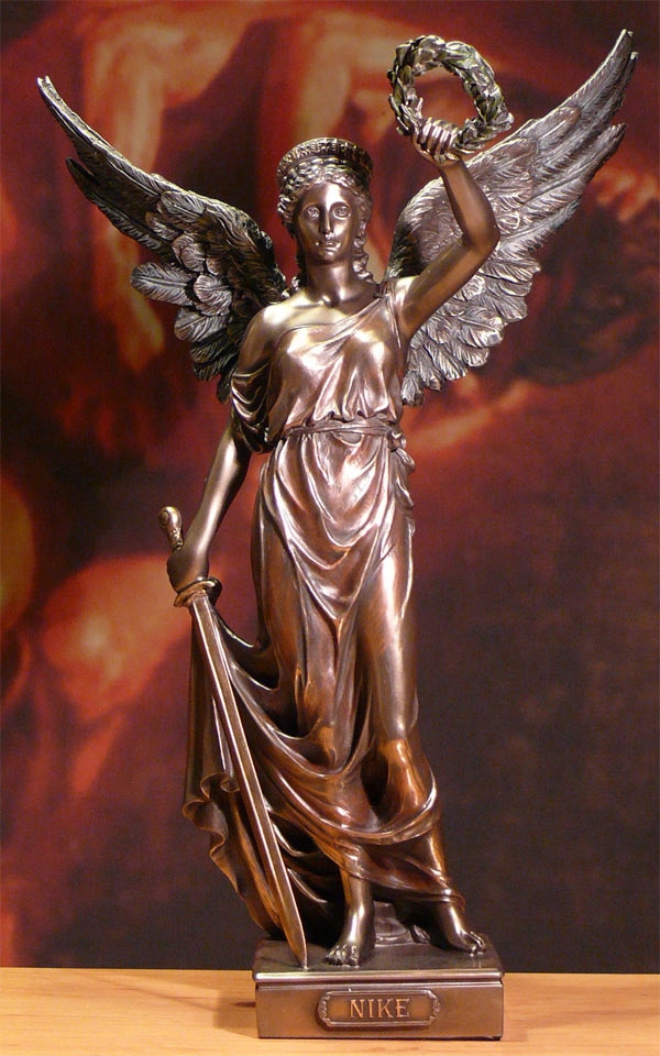 大约在3世纪下半叶开始,天使的圣像绘画规则有了变化,这与古希腊和罗马的传统影响有关,即描绘胜利女神尼基·维多利亚的古老传统,她被描绘成有翅膀的。她的形象是多种多样的,但我们看到的实际上是一个已经基本完备的天使形象了。它身穿长裙,背后有翅膀,头上有带着装饰物的丝带,这也是我们在以后的天使描写中能看到的。关于尼基的形象有不同的版本,在卢浮宫发现的公元前5世纪的青铜雕像,尼基·维多利亚,胜利女神,罗马人的雕塑,有翅膀,头发上有标志性的丝带。