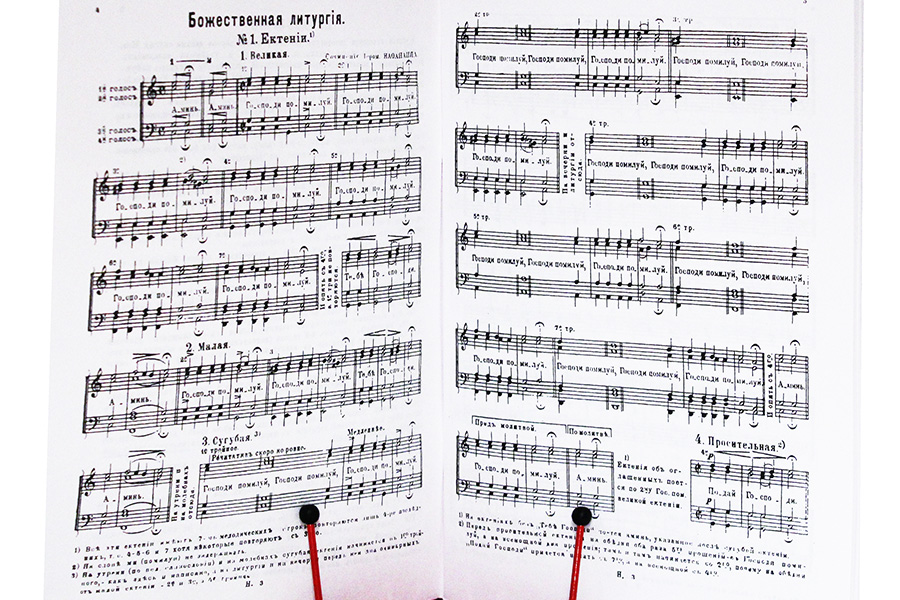 柴可夫斯基对圣乐的第一次体验是《圣金口约翰的圣礼》,这是一组为混合合唱团创作的歌曲。1880年12月18日,它在莫斯科的贵族大会堂内俄罗斯音乐协会会议上首次公开演出,引起了一波具有争议性的意见。支持者声称,圣礼让人产生了一种 “祈祷的情绪”,它既不包含以前西方教堂唱法那样的“与俄罗斯人的感情格格不入的没有精神内涵”,也不包含与我们更不相融的“世俗主义”的因素。相反,反对者则指出了大量的、在他们看来毫无道理的创新。许多人不喜欢这种“非教堂”的音乐。